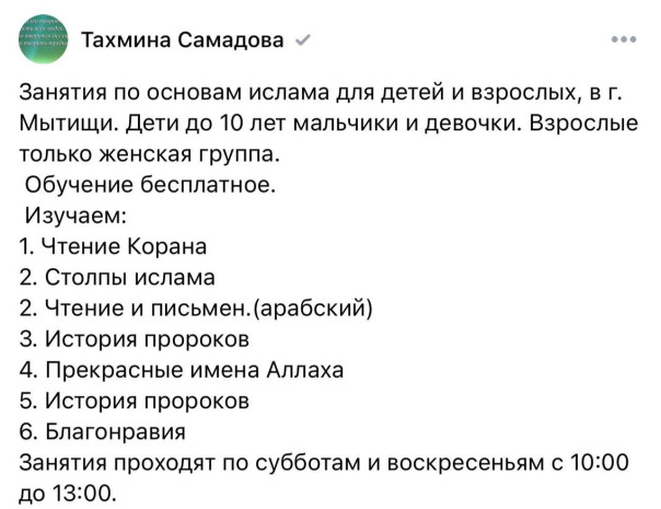 Собственно чем занимается семья Самадовых в Мытищах: пиарит точикистан, собирает таджикам на одежду, и проводит уроки «основ ислама». Источник