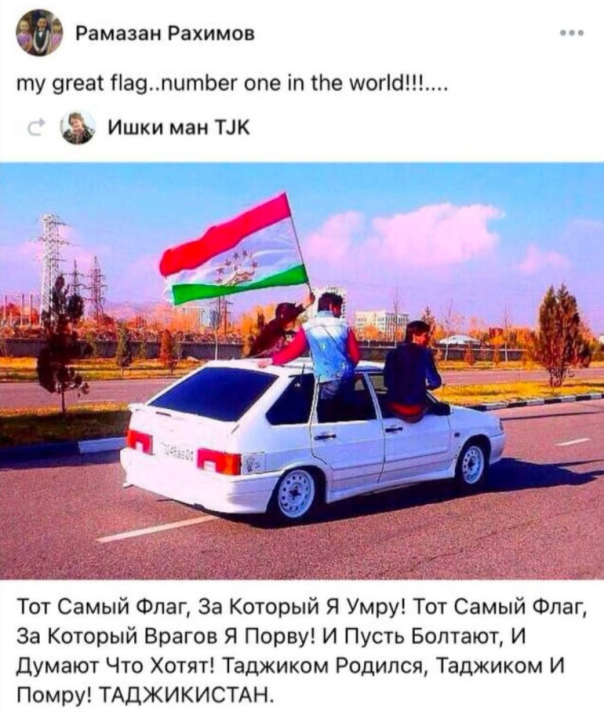 Тахмина Самадова официально нигде не работает (хотя, по имеющейся в сети информации, она на самом деле занимается бизнесом – торгует обувью турецкого производства), при этом занимается благотворительностью исключительно для мусульман – собирает вещи для отправки в Таджикистан. А ее муж публикует на своей странице посты с флагом Таджикистана и пишет: «Тот флаг, за который я умру. Тот флаг, за который я порву». Ни одного доброго слова о России и русских данные граждане в социальных сетях не публиковали.