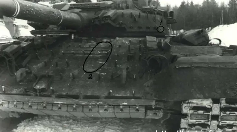 Однако сопутствующие повреждения танков без пробития брони тоже были, особенно при попадании пушечных кумулятивных снарядов и подрыве боевых частей ракет. Немалая их часть так или иначе сказывалась на технической боеспособности танков, в том числе и подвижности. Посмотрим на наиболее характерные случаи.