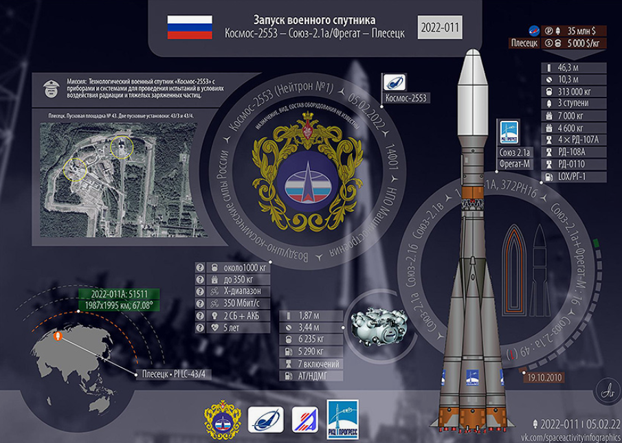 "По внешнему облику, это спутник радиотехнической разведки, разработанный НПО Машиностроения. Но, судя по конфигурации бортовых приборов и систем для тестирования воздействия радиации и тяжелых заряженных частиц, внешний облик это только ширма для аппарата иного назначения".