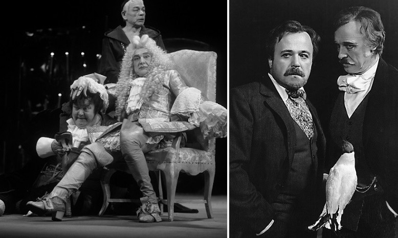 Плюшкин — не стандартный персонаж для русского пантеона, где всё — стремится развернуться, рвануть вширь, как Митя Карамазов, к примеру, а здесь — скукоженная душа. Усыхающая жизнь. Она — подъедаемая очевидной болезнью, но психиатрия не особо была развита во времена Гоголя. Плюшкин-Смоктуновский предстаёт в нескольких ракурсах: мы видим его процветающим помещиком, на балу, который даёт; помещиком, к которому соседи ездят учиться умной скупости, и — мы видим его ещё не скукожившимся, стоящим над гробом жены. Страшная эта вещь: гроб; а коли наполнен телом той, какую любил, какая определяла во многом жизнь?
