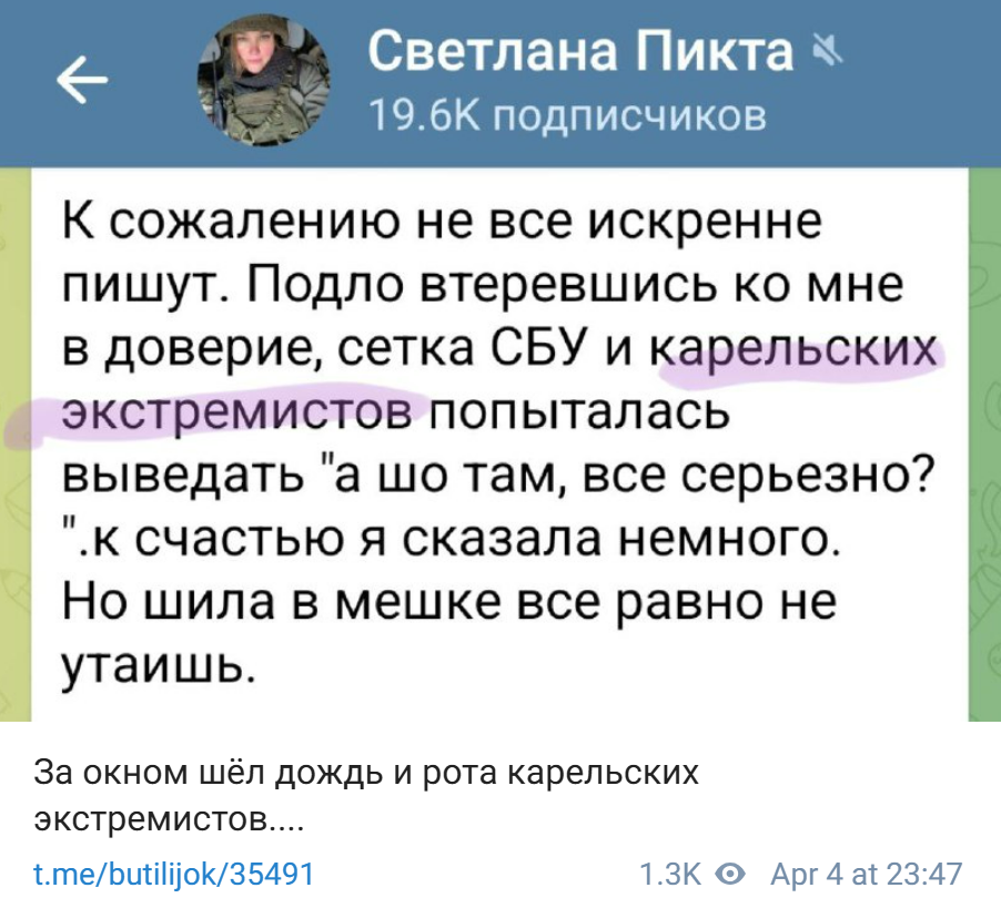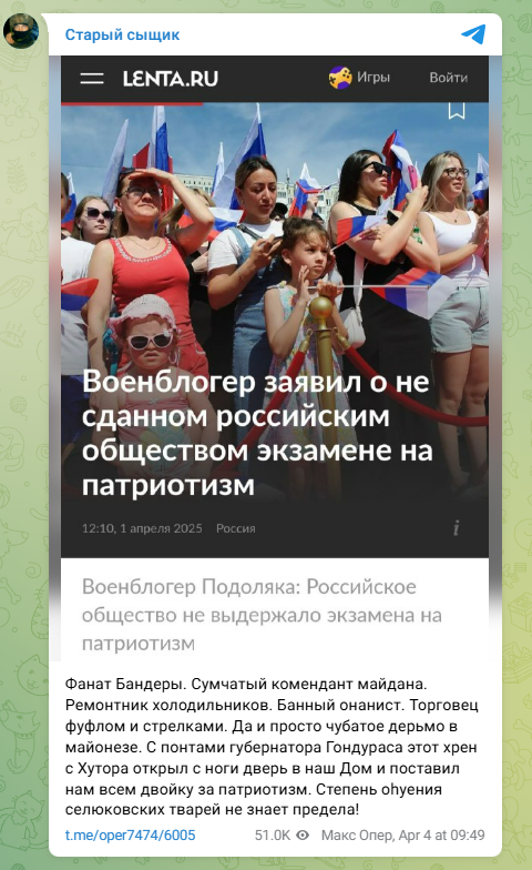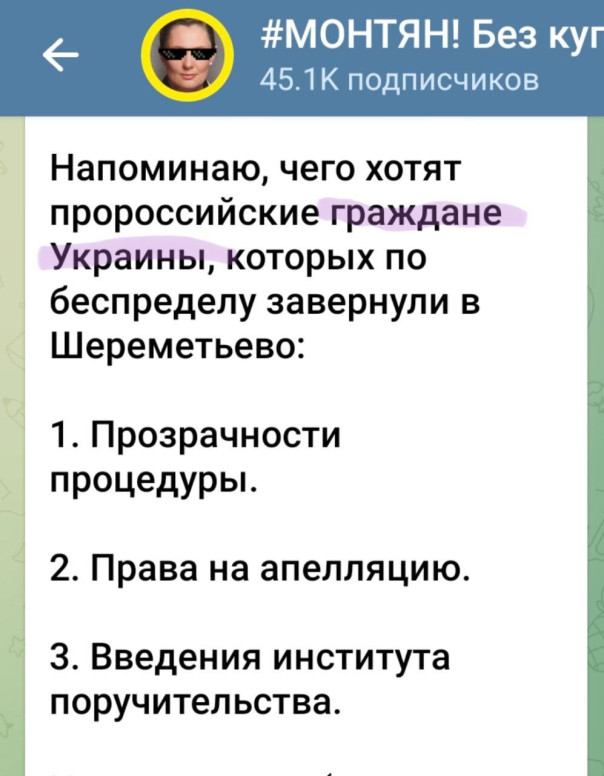 Не вы ли все начали с того, что мы плохо и не так воюем (воюют только НМ ЛДНР), не так отдыхаем, не на то тратим деньги, не так вам помогаем и что вы "сердце, почки, печень и мозг России"? А затем с хуторским апломбом взялись поучать наше МО, ГШ, Правительство, ЦБ, МИД, полицию, ФСБ, да, блд, всех! И всё это с проперженных диванов, не заплатив ещё ни копейки налогов в бюджет и с воплями "дай!" и "мы великие, и вы все нам за это должны!"