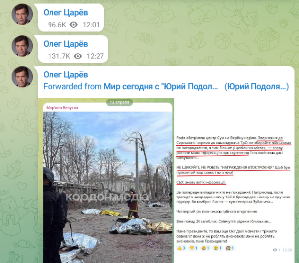 PS: в настоящее время посты с канала борцуна с злочинной российской владой осторожно удалены
