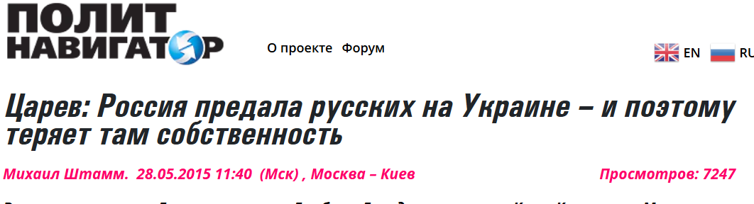 Стоит что-нибудь написать о господине Цареве, сразу появляются пользователи, которые рассказывают, как много г-н Царев претерпел, как он боролся. Да? И каков результат? Он стал президентом Украины и подписал с Россией союзный договор? Он подавил бандеровцев? Он возглавил сопротивление?