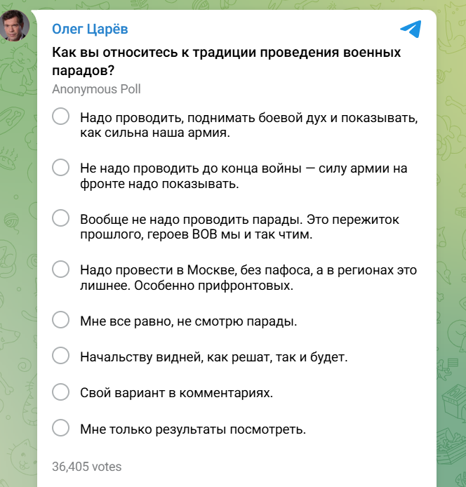 Царев пишет: «Моя рекомендация российским каналам, которые делают вид, что располагают инсайдами. Не пишите про Украину».