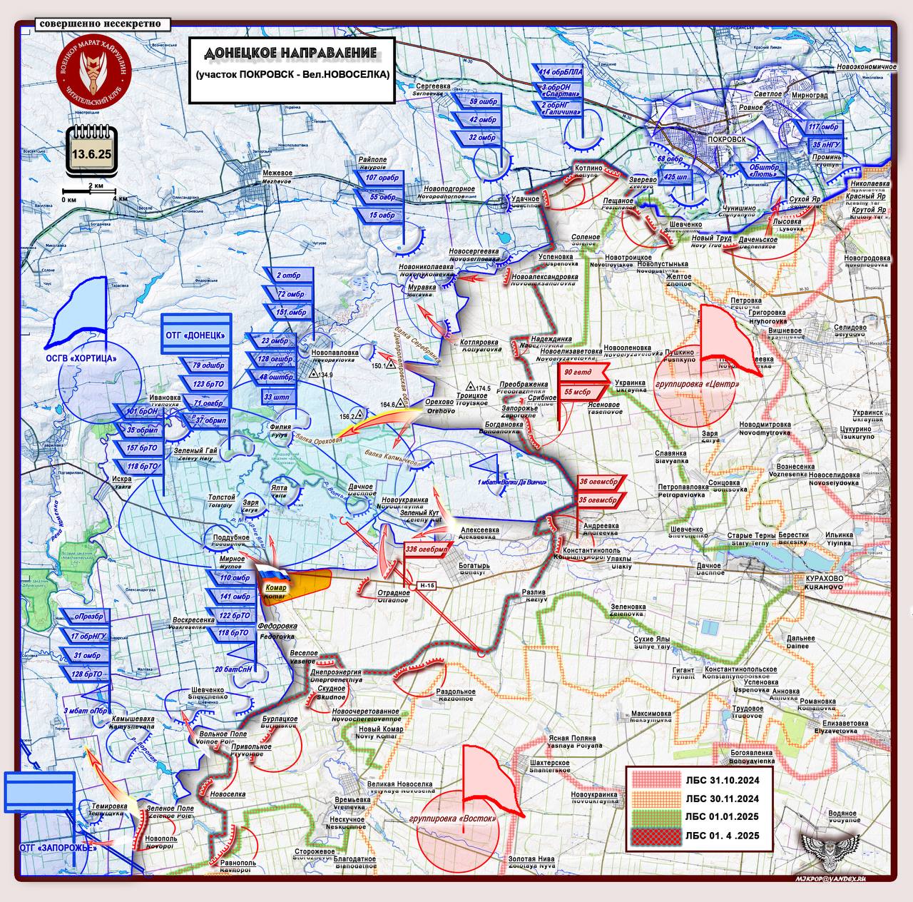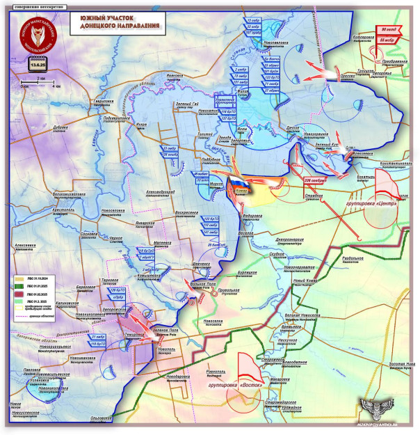 Южнее, в полосе ответственности группировки «Восток», ряд активных обеспечивающих направлений: Зеленое Поле - Запорожское и Зеленое Поле- Темировка.