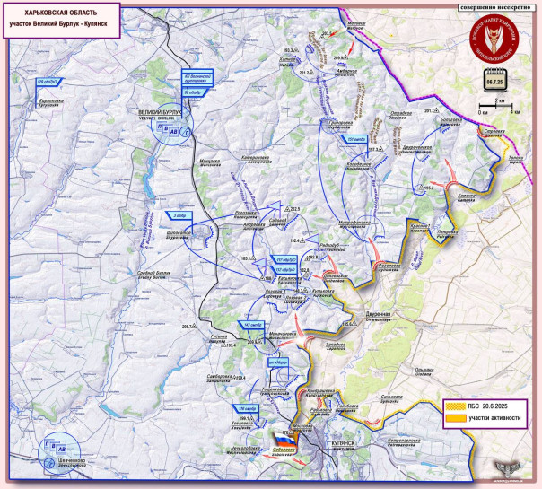 ● 20 июня, как только ВСУ начали маневр по купированию нашего успеха у с. Долгенькое, был нанесен удар на основном направлении (севернее Купянска) и освобождено село Московка (Мирное).
