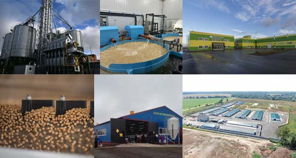 На фото: зерносушильный комплекс, производство форели, комплекс по производству кормовых добавок, селекционно-семеноводческий центр, роботизированная ферма, репродуктор для птицеводства.