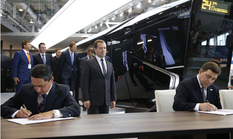 Корпорация Уралвагонзавод, которая занимается производством новейшего российского трамвая Russia One (R1), с гордостью называет его «первым в мире трамваем бизнес-класса», отмечает Die Welt. «Мы, как-никак, конкурируем на международной арене с такими гигантами, как Alstom, Bombardierи и Siemens», — заявил дизайнер R1 Алексей Маслов.