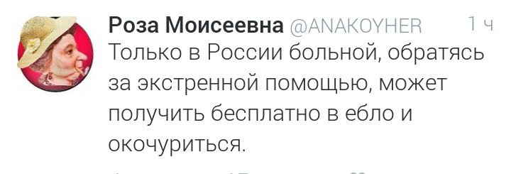 Лихое настало время! И я тут понял что чем хуже в России, тем лучше для либералов. Все мы знаем об ужасном инциденте в Белом городе(Белгород), где врач избил пациента, после чего тот умер. Так вот бороздя просторы интернета, случайно наткнулся на группку, посвященную этой трагедии. Решил заглянуть на огонек. И что бы вы думали я там увидел? Никогда не догадаетесь! Оказывается во всем виноват не врач-убийца и его пособница медсестра, а конечно же ВВП. Кто-то пытается не помочь родным и близким, погибшего, а наоборот поднять волну против власти, разжечь рассовую неприязнь и столкновения. В новостях этой группы стали писать что врач, такой врач благодаря своей конечно же нерусской фамилии и происхождению. Далее нашли подходящую под кадр видеокамеры девушку, и стали ей угрожать. Хотя по такому качеству можно кого хочешь обвинить. И раз эти либералы что-то мявкают, что у нас неправовое государство, то почему они пытаются сами судить? Ну а теперь я скину фото из этого либерального рассадника, которые прикрываясь этим страшным событием пытаются обвинить того, благодаря чьим стараниям они еще живут по уровню жизни не сильно близкому всем нам известной соседней стране.