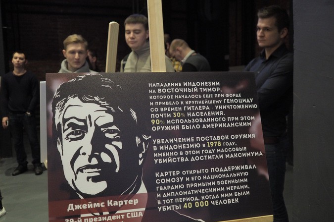 «Мы опирались только на исторические факты. Во время правления этих людей Америка вела войны и вмешивалась в дела других государств. Причем так получилось, что президентов вышло тринадцать. Такая вот выставка — тринадцать злобных президентов», — рассказал «Ридусу» художник Евгений Гурин.