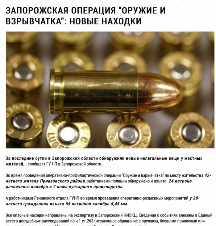 Запорожская милиция победно рапортует об изъятии нескольких десятков патронов и пары охотничьих ножей