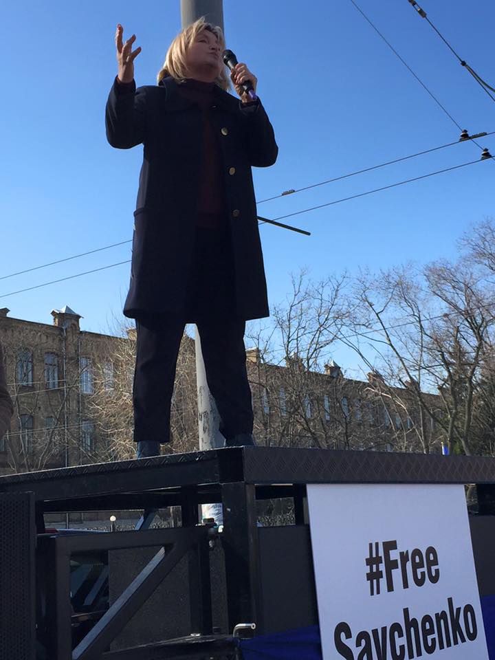 Интересно, что первое слово на митинге предоставили недавно освобожденной по обмену Марии Варфоломеевой, около года назад задержанной в ЛНР при попытке наведения огня.