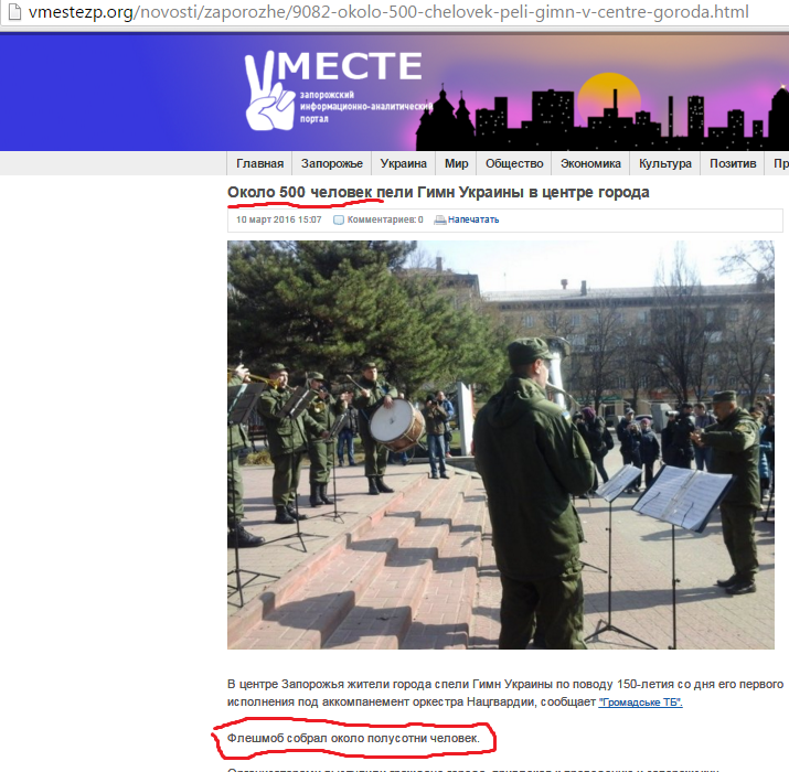 В результатах поиска, как правило, видно только громкий заголовок, а открывать и читать подобную статью вряд ли кто-то будет. Как видно по фотографиям выше – «около пятидесяти человек» это вместе с военным оркестром.