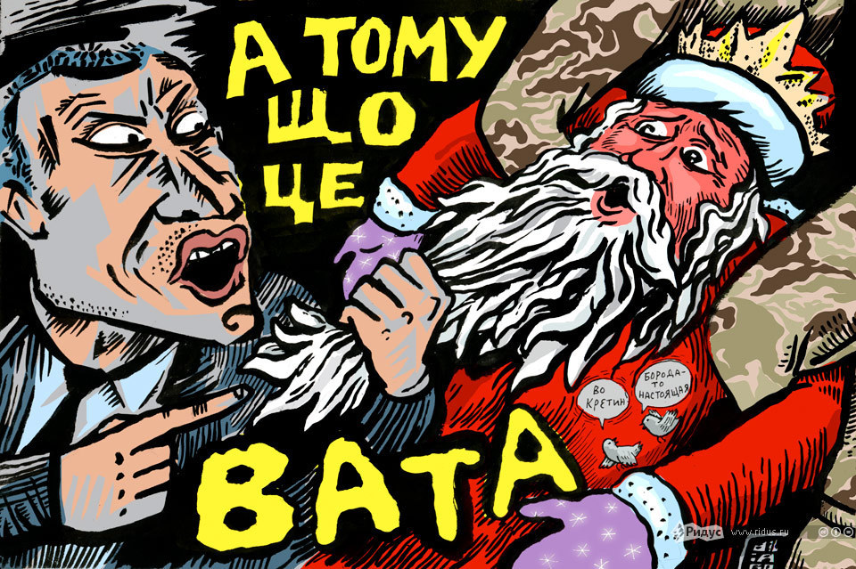 А вы-ы-ы — фэйк! Фэйк-к-к! Этот прикол с Дедом Морозом обкатывался с момента прихода к власти Кэт Чумаченко и её личного бжоловода Ющенко. Всё строго по инструкциям из Госдепа, никакой отсебятины. Страна не пуганных идиотов. Вы не согласны? Отчего же? Там не все идиоты. Согласен, не все, но почти все. Недавно, как раз в аккурат на 8 Марта, особо одарённые укрочанки предложили отказаться от празднования Международного женского дня. Так как праздник этот взяткоёмкий. Врут, сволочи. Ну какие там взятки, пузырь одеколона и даже не тройного, да коробку шоколада, ну и букет цветов. Ну, какая это взятка? Смех!