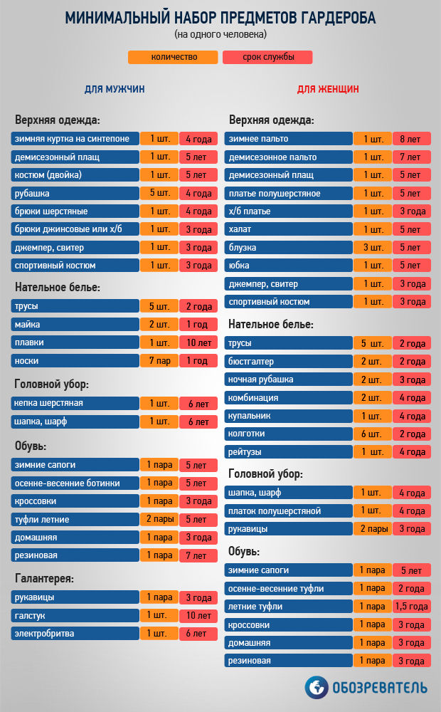Что же касается одежды, то правительству предлагается также утвердить для мужчин норму по 1 костюму, галстуку, джемперу, свитеру, брюках в год. Из белья: 6 трусов, 2 майки, 1 плавки и 10 носков - в год."Женщинам: 6 трусов, 2 бюстгальтера, 2 майки, 1 купальник, 2 пары синтетических колготок и 1 брюки. В части средств гигиены: 2 зубные щетки, 1 одеколон, 1 расческа, туалетная бумага - 12 шт., - все это на год", - говорит Батрин.