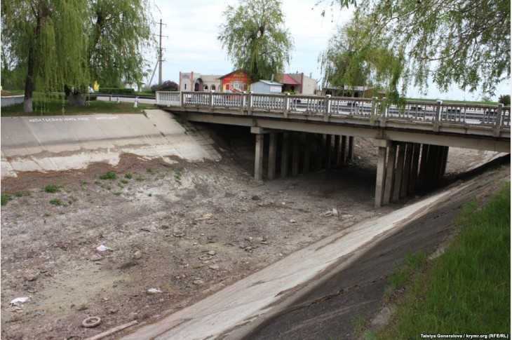 В мае 2014 года глава Херсонской областной администрации Юрий Одарченко сообщил, что на Северо-Крымском канале начато возведение якобы пункта учета подачи воды, а не дамбы из мешков с песком. В действительности же в 40 километрах от границы у моста в районе поселка Каланчак сооружалась дамба из мешков с песком. Одарченко лгал в обычном для майдана стиле: