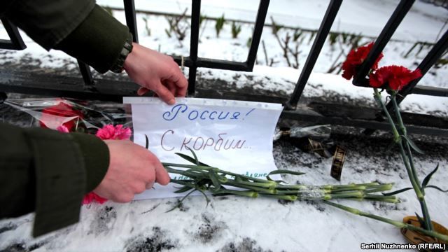 - Жители Киева сегодня приносили цветы к зданию российского посольства и выражали свои соболезнования, — сказал пресс-секретарь посольства РФ Олег Гришин.