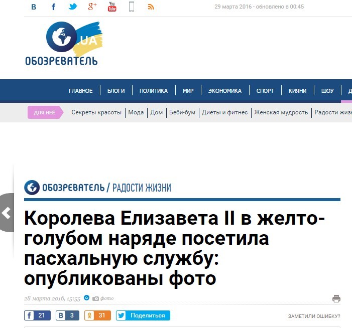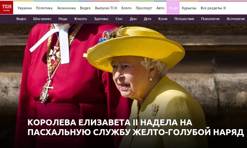 Королева Елизавета была одета в цвета украинского флага — желтое пальто, желтую шляпу и такое же платье с голубыми цветами, чем вызвала восторг украинцев, которые решили, что ее наряд свидетельствует о поддержке их страны. Фото Елизаветы II разлетелись по соцсетям и стали предметом обсуждений.