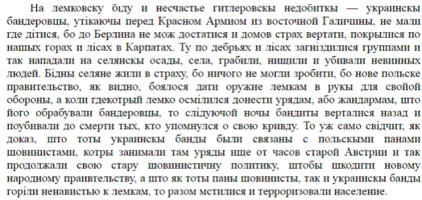 Лемки-русофилы уходили к советским партизанам. Вот как повествует о позорной роли украиноманов в поддержке оккупации родной земли Ант. Цисляк: