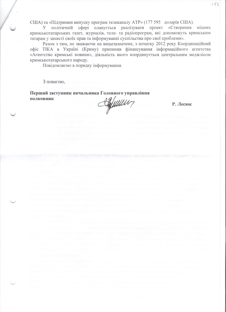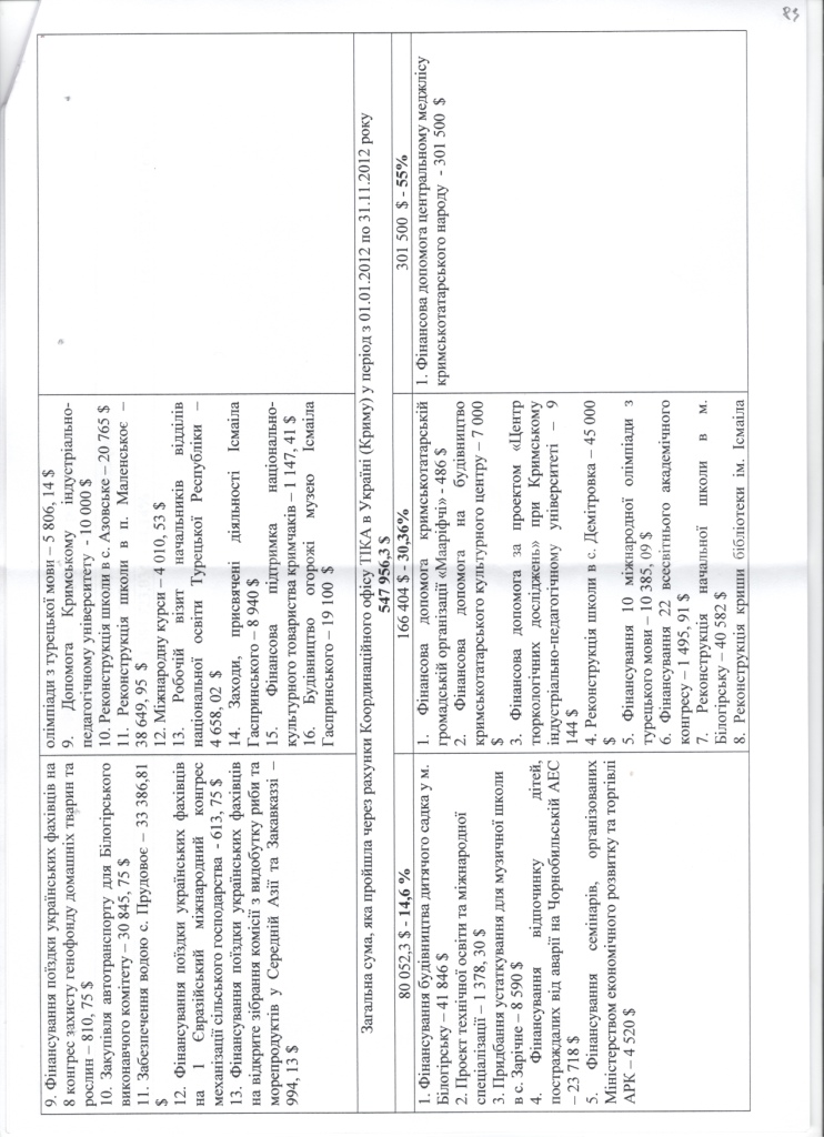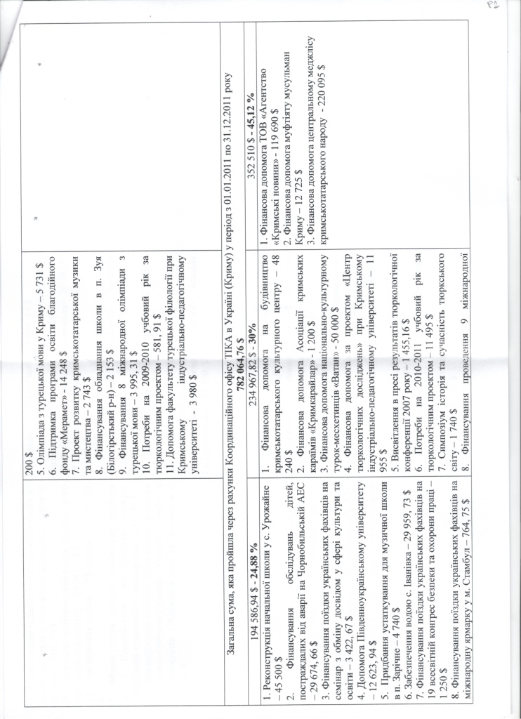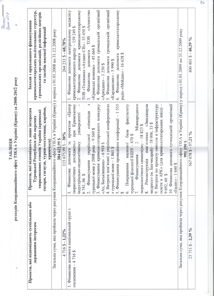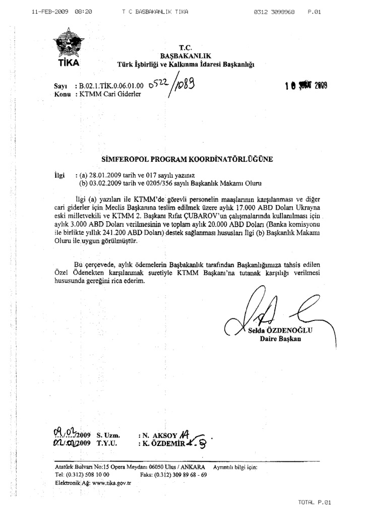Кроме того, СБУ информировала Киев, что деятельность Джемилева координировалась турецкими дипломатами из посольства Турции и спонсировалась турецкой организацией TIKA, влившей в «меджлис» с 2008 по 2012 годы $3 млн. Деньги шли не только на задекларированные цели, а переводились напрямую «близкому кругу» Джемилева. Что само по себе являлось прямым нарушением внутренних законов Украины,