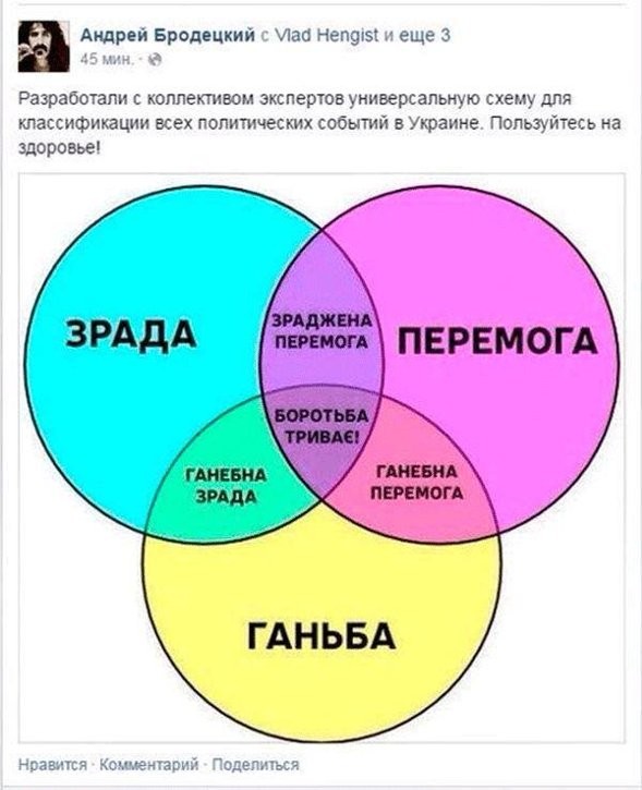 Никто уже не упомнит, когда впервые после майдана прозвучало «зрада!» и начался поиск предателей внутри самой кастрюлеголовой тусовки. Если с «сепаратистами» и «ватой» все понятно, то внутренний враг оказался настолько коварен и многочислен, что на его фоне очень тяжело понять кто на самом деле «патриот» Украины, а кто – «зрадник». Причем – на любом уровне.
