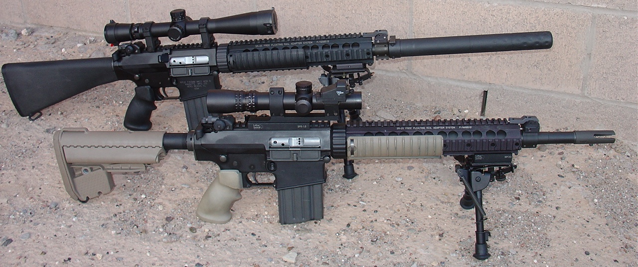 В защиту СВД, скажу, что это по-советски продуманное оружие в своем классе. А её класс всё таки лёгкая, армейская винтовка. Зачем на неё навернули прицелы для дальней стрельбы, скорее всего спортивной, кроме всего, не понятно. Особенно доставляет наличие на прицеле уровня (вот та зелёная штука сверху), такое в армейской стрельбе вообще редко используют. И не в этом калибре. Также радует и то ли глушитель, то ли шумоподавитель. Хотели, как у американцев, но... Чем людей не устроили родные щечки прикладов (ну как времянка, хотя бы) и имеющиеся модели затыльников тоже не ясно, от слова совсем.