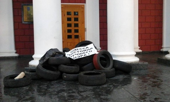 По словам корреспондента телеканала, все выходы в одесскую мэрию заблокированы, главный вход забаррикадирован шинами и мусорными баками. Активисты собираются разблокировать горсовет после того, как их требования выполнят. Митингующие ранее объявили, что требуют отставки мэра Одессы Геннадия Труханова.
