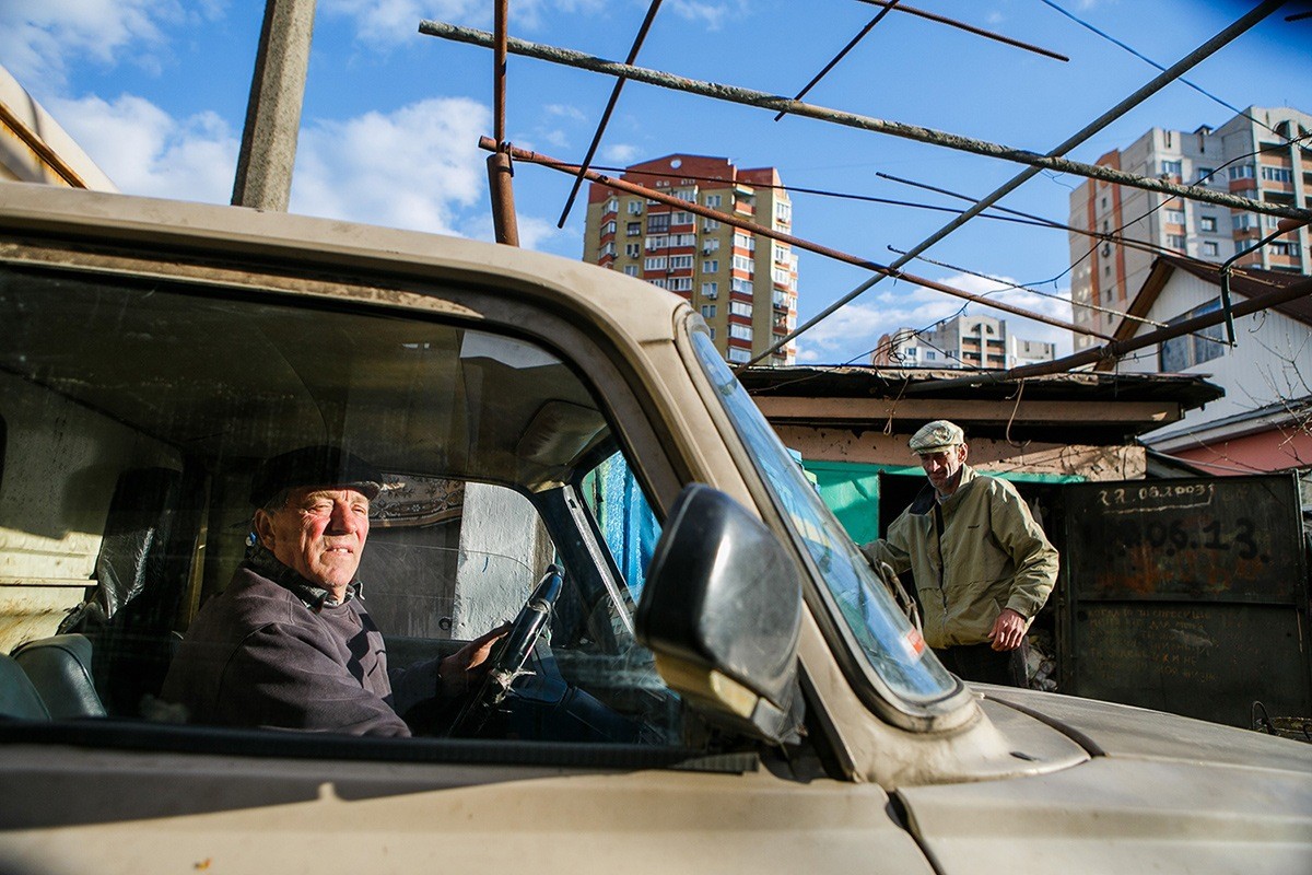 Места и правда хватает многим. У Юрченко нашли приют и совсем посторонние люди. Вот молчаливый странный грузин Бондо, за глаза его называют Бондюэль, садится за руль дряхлого хозяйского пикапа «Иж» со значком BMW на решётке радиатора. Едет в интернат за помоями.