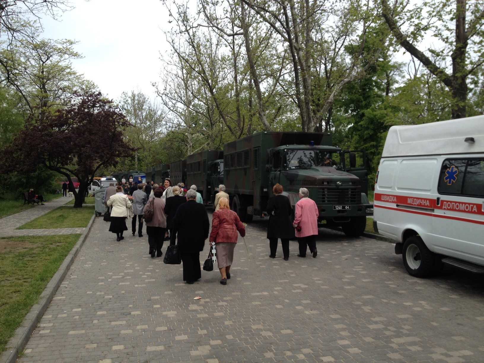 Моя Одесса, мой город-герой для того, чтоб отдать дань памяти вынужден терпеть чудовищное унижение, на входе на Аллею Славы подвергаясь личному досмотру со стороны специально созданных фильтрационных постов, под надзором военных с собаками и пристальным вниманием сотрудников СБУ, тщательно фиксирующих всех пришедших.