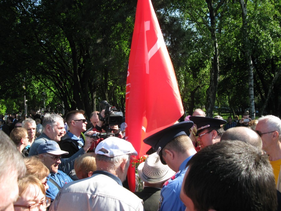 «Тут же набежали бандеровские твари и полицаи, заставив свернуть Знамя. Один полицай даже кричал, что сегодня день скорби и памяти, поэтому нам нечего праздновать», — рассказывает автор.