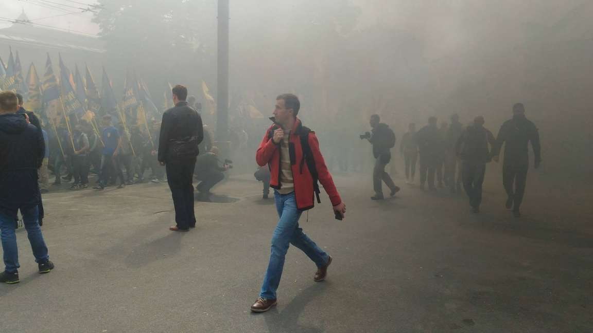 В ходе митинга радикалы одновременно зажгли несколько десятков футбольных дымовых шашек и взрывали петарды. В результате этого площадь перед Радой окутал едкий дым.