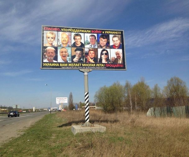 Напомним, в апреле почему-то в окрестностях Киева, да еще на Обуховской трассе, появились биг-борды, адресованные российским артистам, которым авторы искренне желали "многая лета".