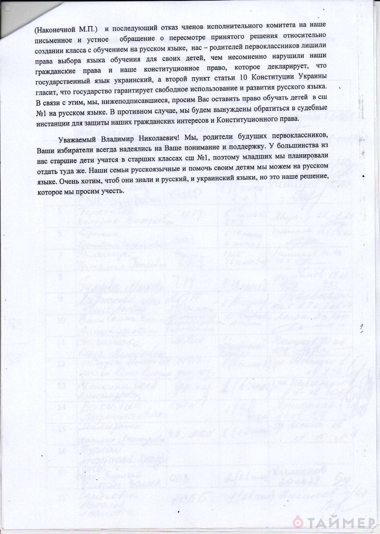 Эта новость возмутила как родителей, так и педагогов. По словам родителей, чиновники приняли решение некорректно, а родителей просто поставили перед фактом. В связи с этим родители направили в управление образования и городскому голове письмо с просьбой не закрывать русские классы в первой школе.