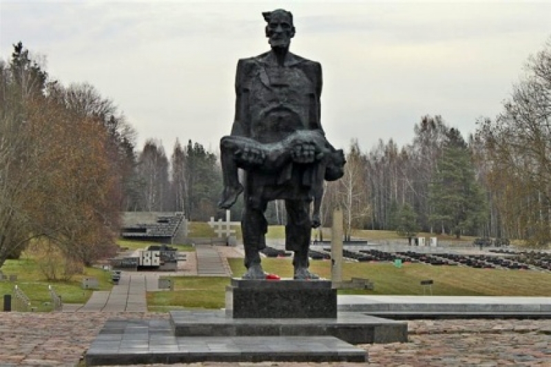«...Кровавая трагедия этого лесного поселения из 26 дворов состоялась 22 марта 1943 года. 149 человек, из них 76 детей, навечно остались в этой адской могиле. Все, кроме одного — Йосифа Йосифовича Каминского, который случайно спасся из горящего, переполненного людьми сарая и в бронзе предстал теперь с мертвым сыном на протянутых руках. В этих его руках все — и отчаяние, и трагизм, и бесконечная воля к жизни, которая и предоставила белорусам возможность выстоять и победить..», — написал Василий Быков в статье «Колокола Хатыни» в 1972 году.