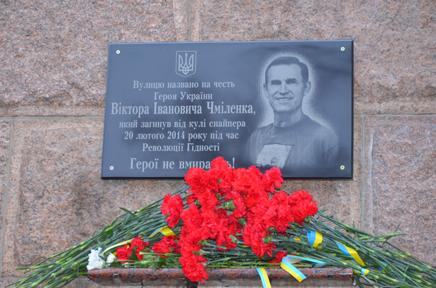 Погибшему «герою Небесной сотни» Виктору Чмиленко присвоили звание «героя Украины», его именем назвали одну из улиц Кировограда и установили на ней памятную доску.