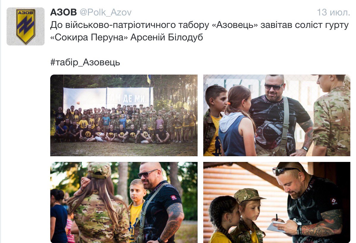 Однако, на этом деятельность «Азова» в отношении подрастающего поколения не ограничивается. Помимо «студенческой практики», они активно занимаются и досугом школьников. Так сказать, растят патриотов с младых ногтей. Чтоб лет через 10 в стране была уже новая, чистая и свободная от любых пережитков и предрассудков нация.