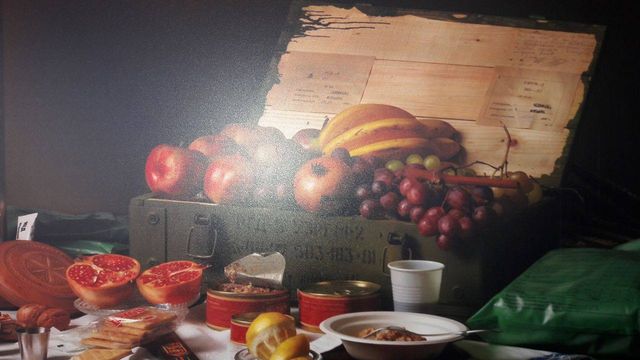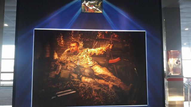 Прилетающих в сердце Украины через его воздушные ворота встречает пародия на "Тайную вечерю" Леонародо да Винчи с карателями АТО в виде апостолов. В роли "христа" в центр сидит быший священник Сергий Дмитриев, перебежавший к Филарету в период майдана. О нем рассказывали, что в свое время он гонялся за молоденькими алтарниками. В этом контексте ласковые взгляды, которые он бросает на "героев", а они - на него, прибавляет пикантности картинке.