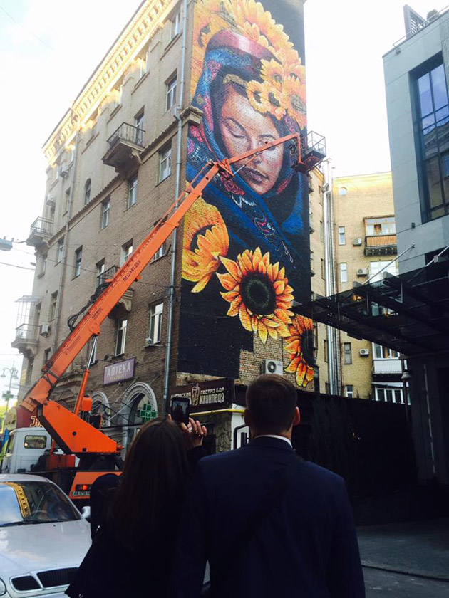 В Киеве недалеко от Майдана появился мурал Берегиня.