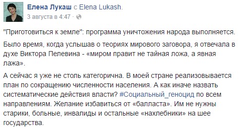 Елена Лукаш: «Приготовиться к земле»: программа уничтожения народа выполняется » E-News.su | Cамые свежие и актуальные новости Новороссии, России, Украины, Мира, политика, аналитика