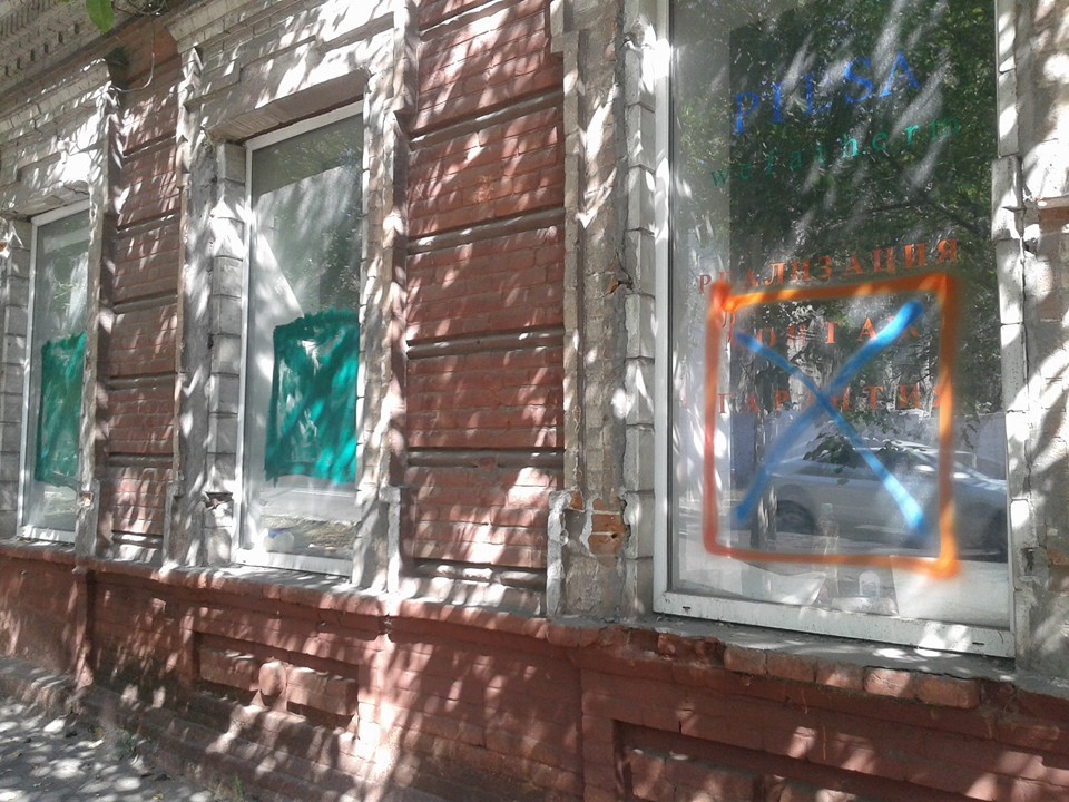 О "вражеских" символах в городе сообщила на своей странице в соцсети прорежимный волонтер Галина Однорог.