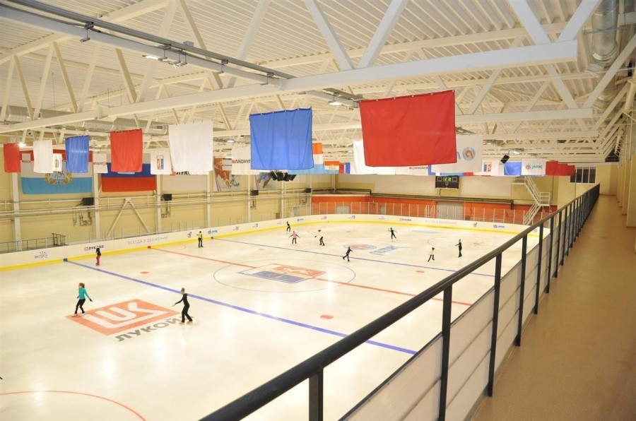 В двухэтажном здании площадью 7 тыс. квадратных метров размещаются ледовая арена, универсальный игровой, тренажерный и гимнастический залы, зал тяжелой атлетики и борьбы, шахматный и бильярдный клубы, медпункт.