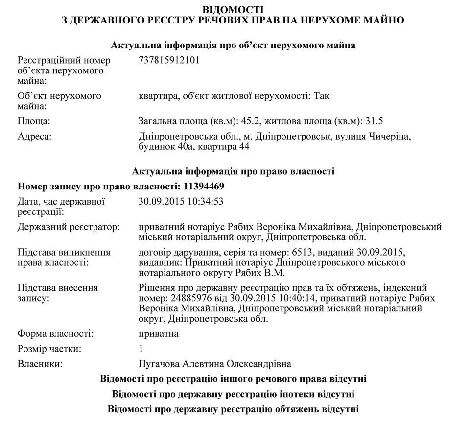 По его словам, еще 2 сентября прошлого года Пугачева объявили в розыск, а уже 30 сентября полицейский чин в Днепре дарит матери «торнадовца» двухкомнатную квартиру.
