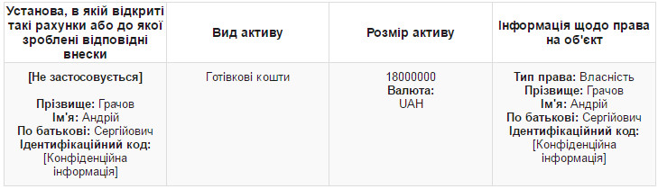 В 2016 году Андрей Грачев был назначен начальником отдела помощи участникам АТО в Винницкой областной администрации. По новым правилам, введенным по требованию МВФ, каждый украинский государственный служащий должен задекларировать имеющиеся у него объекты недвижимости, ценные предметы, денежные средства и т.п. Декларации размещаются на общедоступном портале. Выложил свою и чиновник Грачев, указав, в частности, что имеет денежные средства в размере 18 миллионов гривен наличными:
