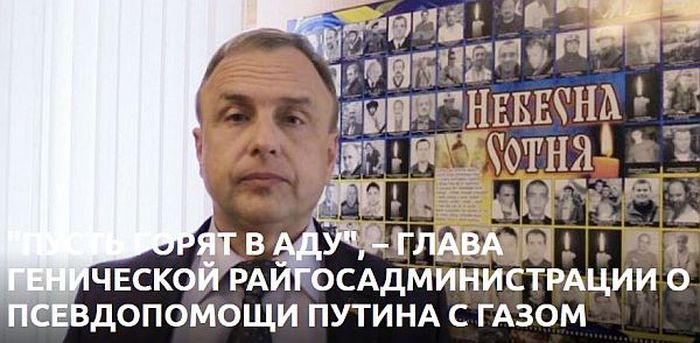 Зато сказал следующее: «Я, как украинец, не смотрю российские каналы, но судя по поступающим звонкам понимаю, что происходит. Во-первых, на территории оккупированного Крыма нет своего газа и они не могут нам оказывать помощь. Во-вторых, у нас дефицит газа может возникнуть при больших морозах в течении нескольких недель. И его не хватит только 30% абонентов, которых всего 6 тысяч, а не 70 тысяч, как врут российские пропагандисты. Сейчас в Геническом районе газ в излишке и мы сами можем помочь украинцам в Крыму. А в-третьих, украинский премьер-министр Владимир Гройсман мне лично пообещал, что в ближайшее время проблема с газом в Геническе будет решена государством».