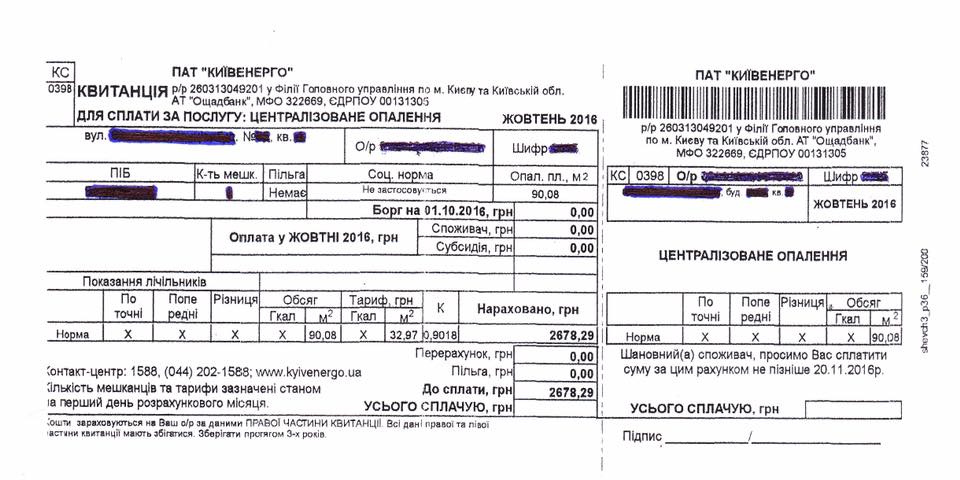 "Неуважаемые майданные власти, вы реально уху ели?!?!?!? За квартиру 90 квадратных метров за октябрь только за отопление, которого де-факто нет, 2678 грн!!!!