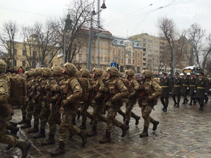 Украинская армия устроила парад в центре Львова, приуроченный ко Дню Вооруженных Сил.