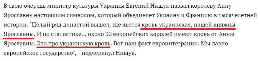 А вот еще одна статья про Францию и Анну Ярославну с русскоязычной версии французского ресурса RFI. Свидомизма в ней накручено покруче и позабористей.