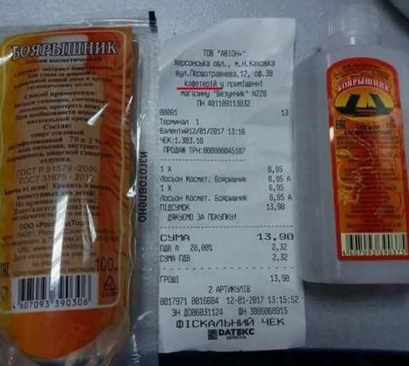 «Какая-то сволочь решила потравить людей и в Украине. Встречайте — лосьон «Боярышник» производства С. Петербург уже у нас, в Украине», — написал один из них.