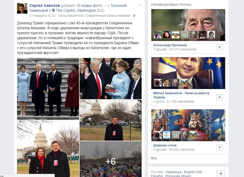 Украинские политики, вернувшиеся с инаугурации Трампа, взялись активно размещать на своих страницах в соцсетях фотографии, собственноручно сделанные на мероприятии.